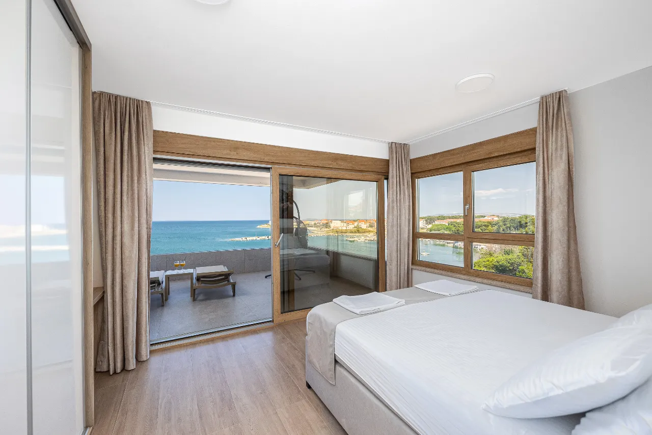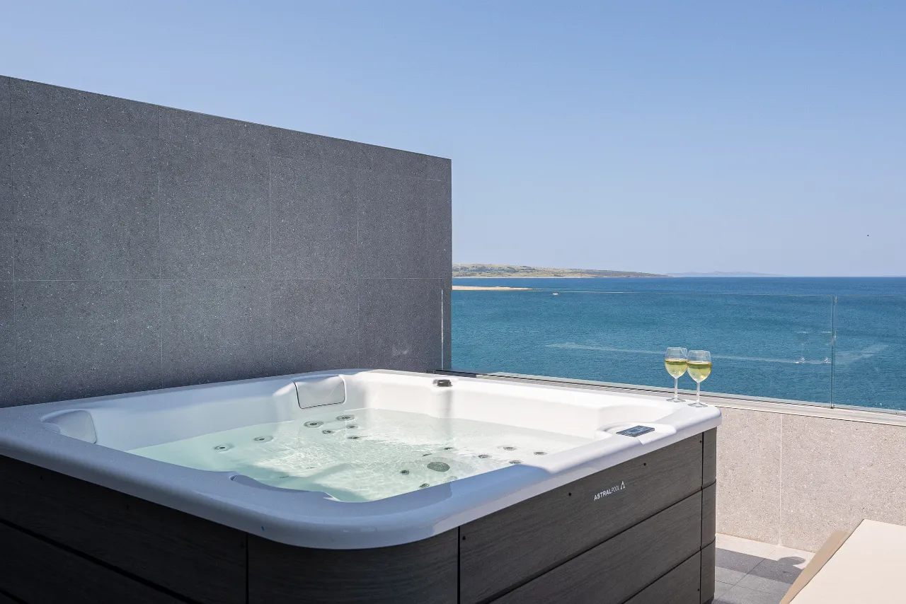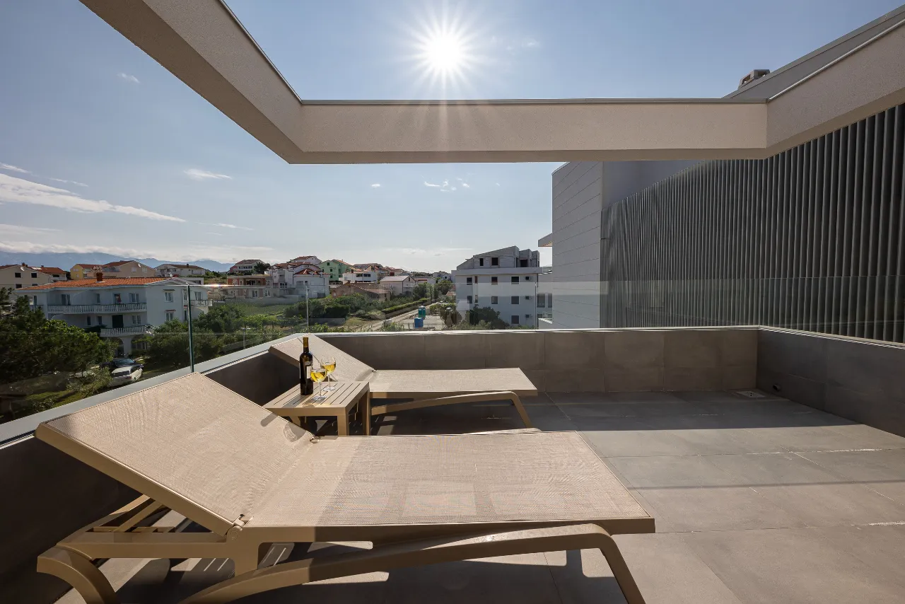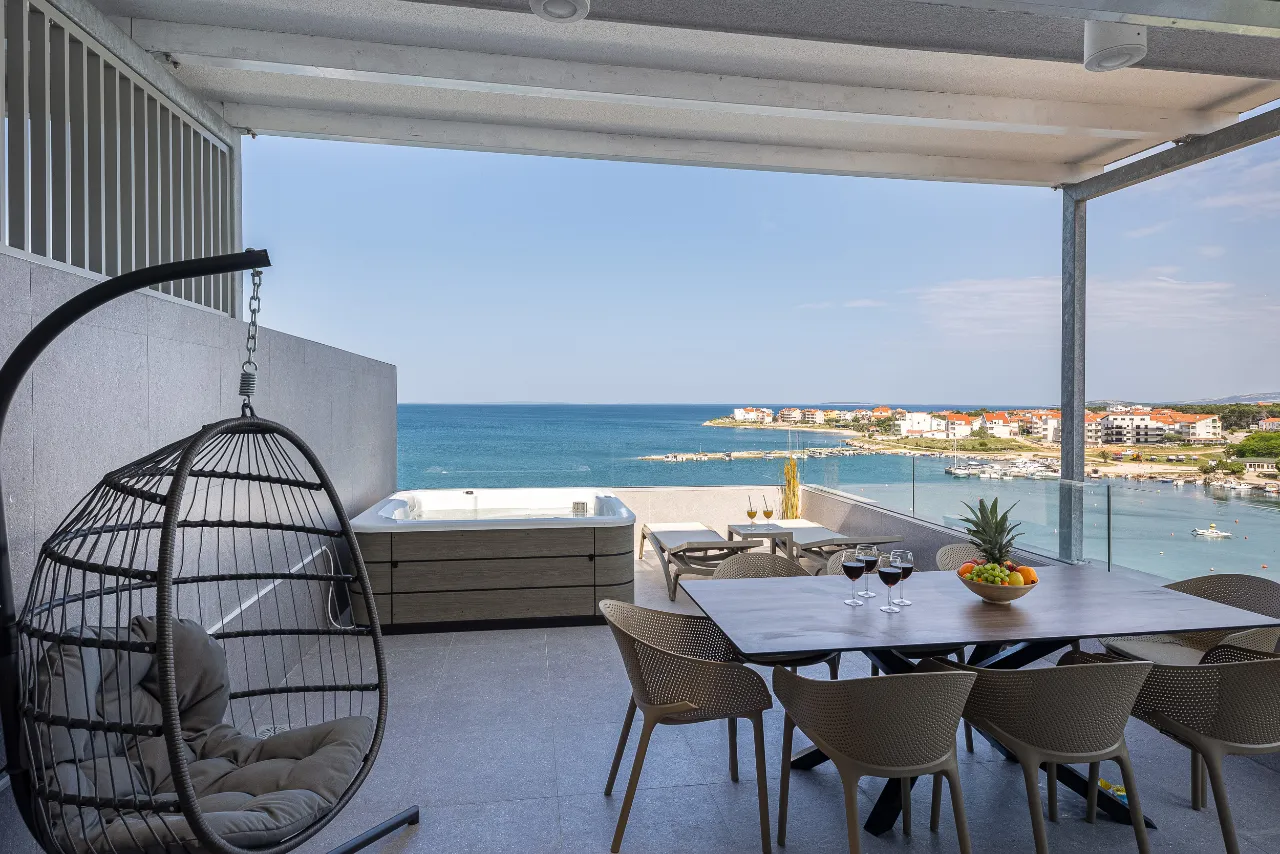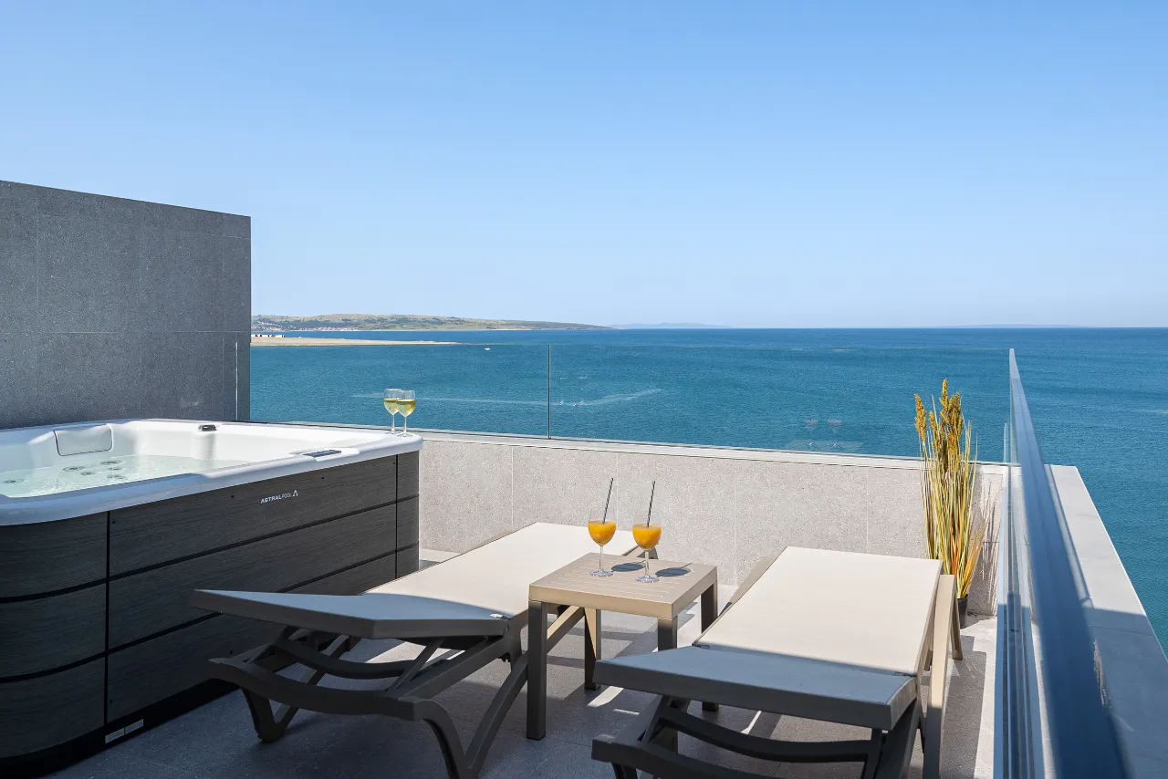 Welcome to our Duplex Apartment, a spacious and luxurious retreat that offers an unforgettable experience. With its generous size and stunning views, this apartment is designed to provide you with the utmost comfort and relaxation. Spanning across an impressive 170 m², this entire apartment offers ample space for you and your guests to enjoy. The apartment features a stylish living room, four separate bedrooms, and three bathrooms, each equipped with a shower and complimentary toiletries, ensuring convenience and comfort for all. The standout feature of this apartment is the hot tub, providing the perfect place to relax and unwind after a long day of exploring. Immerse yourself in its soothing waters and let your cares melt away as you take in the breathtaking views. This apartment can accommodate up to eight adults. All our apartments are airconditioned and have free Wi-Fi. Parking is available on-site.