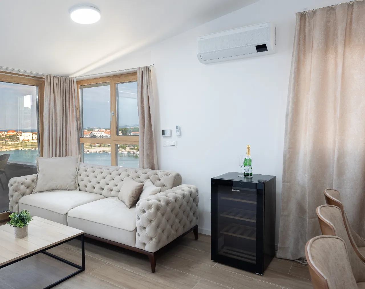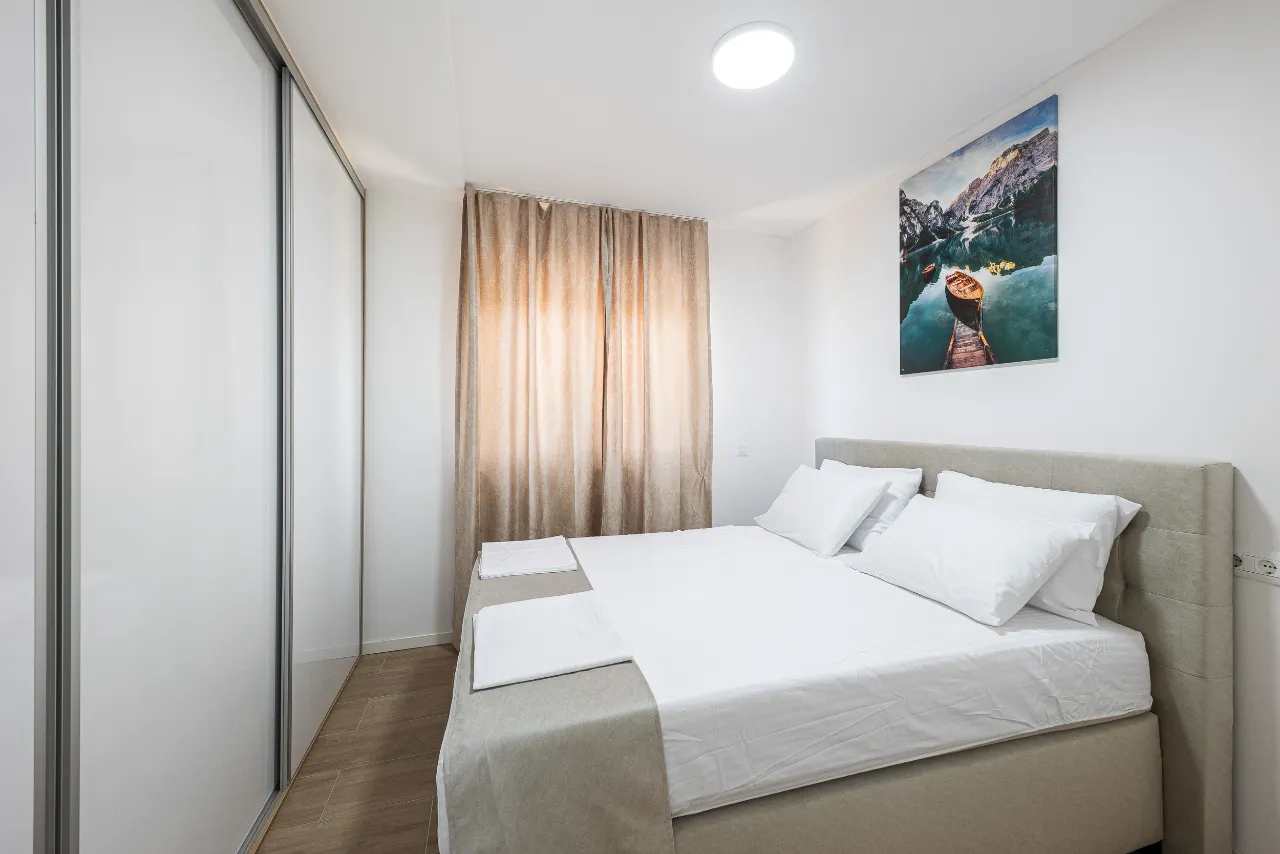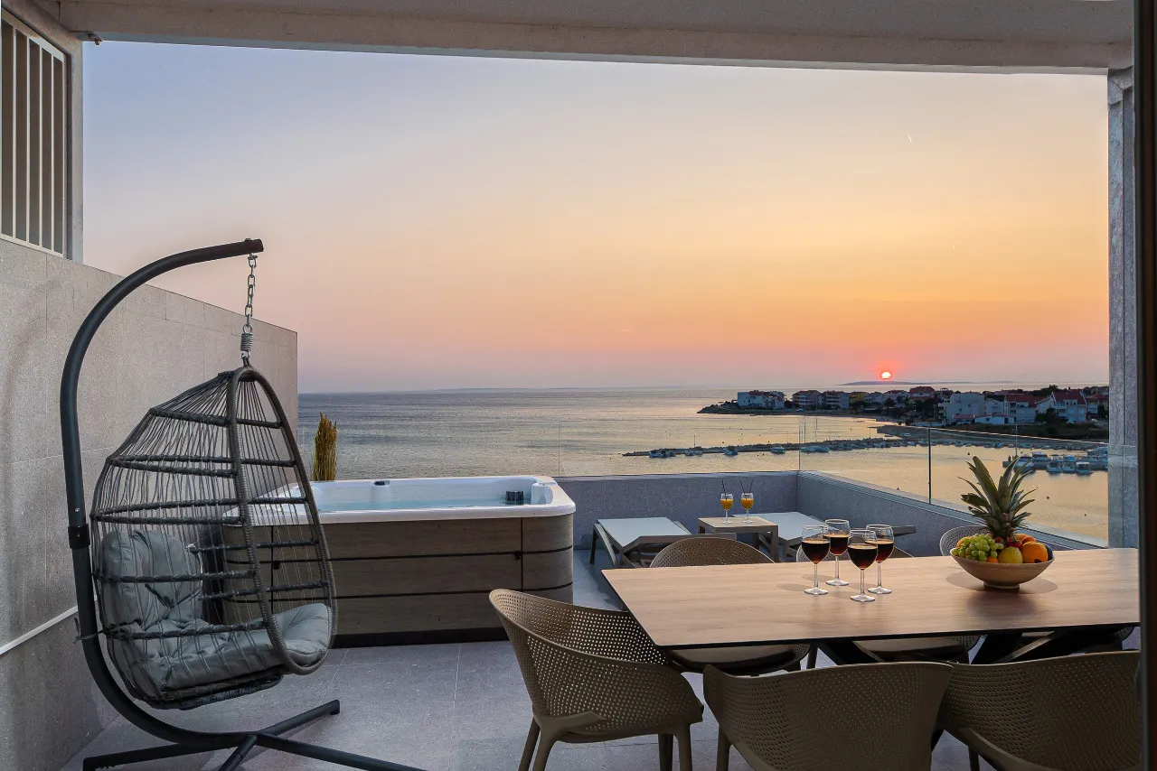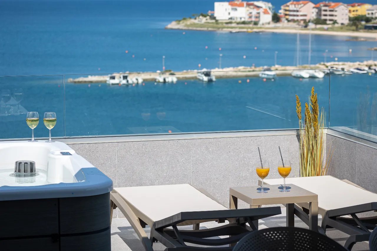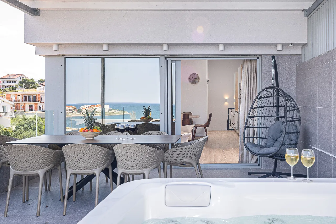 Welcome to our Duplex Apartment, a spacious and luxurious retreat that offers an unforgettable experience. With its generous size and stunning views, this apartment is designed to provide you with the utmost comfort and relaxation. Spanning across an impressive 170 m², this entire apartment offers ample space for you and your guests to enjoy. The apartment features a stylish living room, four separate bedrooms, and three bathrooms, each equipped with a shower and complimentary toiletries, ensuring convenience and comfort for all. The standout feature of this apartment is the hot tub, providing the perfect place to relax and unwind after a long day of exploring. Immerse yourself in its soothing waters and let your cares melt away as you take in the breathtaking views. This apartment can accommodate up to eight adults. All our apartments are airconditioned and have free Wi-Fi. Parking is available on-site.